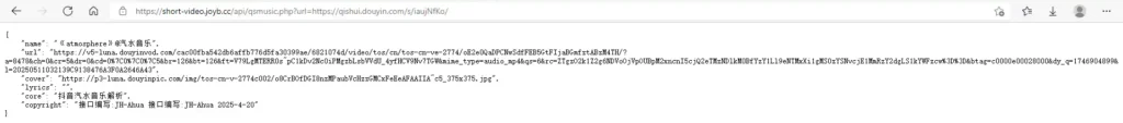 GET https://short-video.joyb.cc/api/qsmusic.php?url=https%3A%2F%2Fqishui.douyin.com%2Fs%2FiaujNfKo%2F