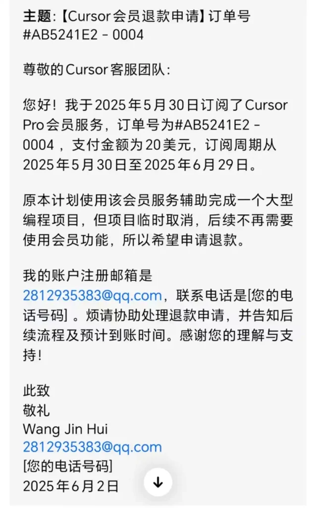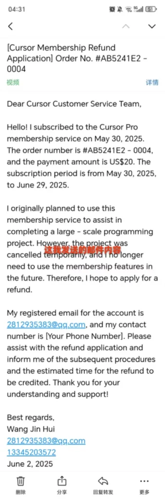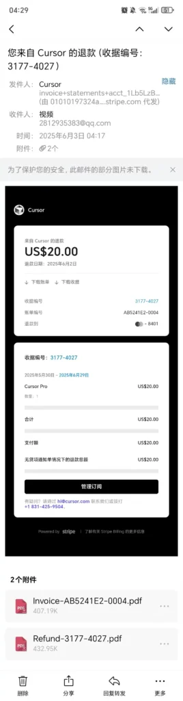 ![图片[4]-cursor会员邮箱退款经历-开心宝(JoyB):好奇不灭,创造无限 —— 记录 · 讨论 · 拥有](https://joyb.cc/wp-content/uploads/2025/06/20250604015202540-退款经历cursor2-339x1024.webp)